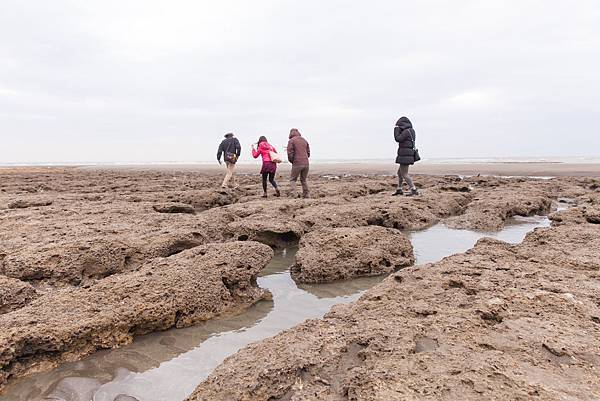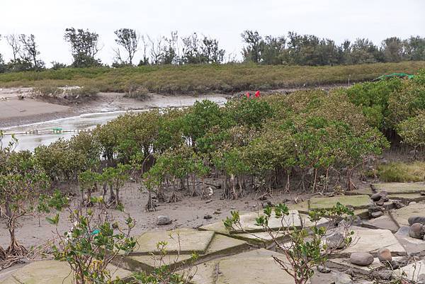 在潘老師的帶領下,採訪團隊前往野生生物與魚類的棲息地-紅樹林溼地,站在堤防邊聽潘老師話說從前,讓人彷彿親眼見到觀新藻礁附近生態的變遷,潘老師說:堤防邊從前可見許多水筆仔,但近年來卻逐漸減少,榮景不再。繼續前行到了觀音工業區的汙水處理廠排水口,撲鼻異味迎面而來,看著汙濁的水流,讓大家不禁跟著憂慮起來,而沿著排水口我們抵達樹林溪口藻礁,映入眼簾的是沙灘上遍布的垃圾,受汙水影響變色的藻礁,及許多死亡的牡蠣。生態的危急景觀,直接的攤開在我們的眼前,而不再只是經由媒體轉載的二手訊息,衝擊直入人心。